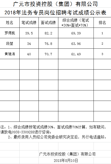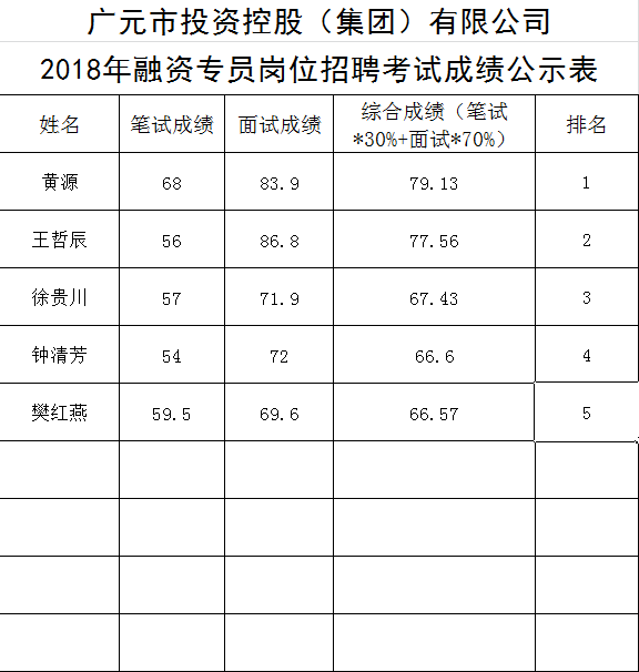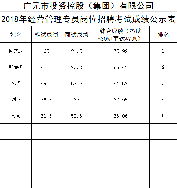 關(guān)于公開招聘工作人員的成績公示